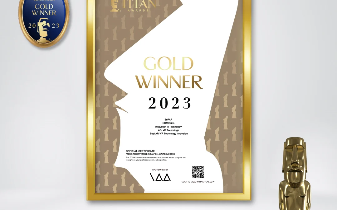 We are both thrilled and proud to announce that, with our breakthrough Augmented Reality technology SuPAR, we have been awarded the prestigious Gold Winner title in both the Best AR/VR Technology Innovation and AR/VR Technology categories at the TITAN Awards.